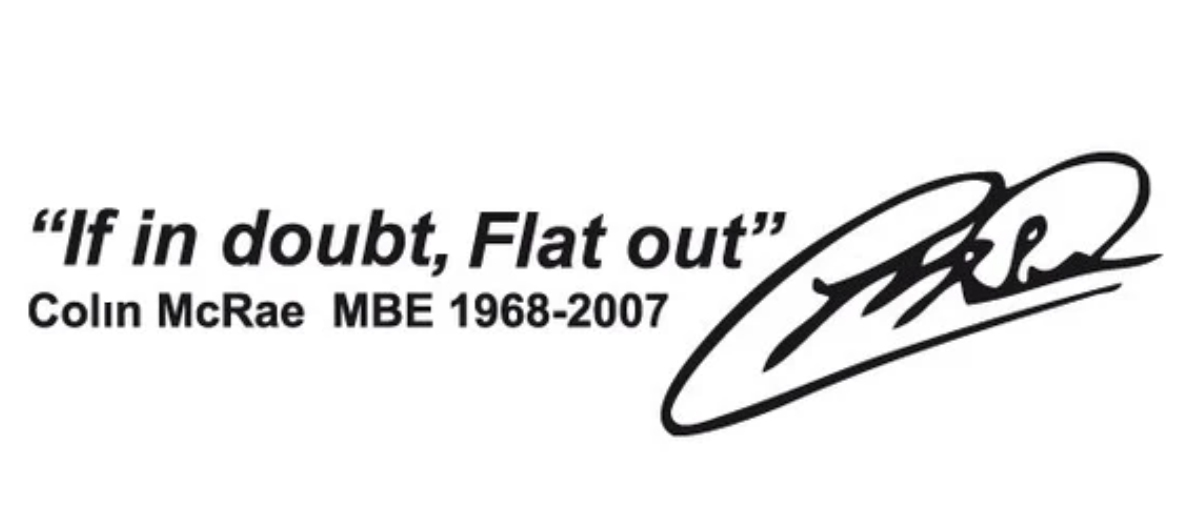 If In Doubt Flat Out Colin McRae inspired car sticker vinyl car decal.